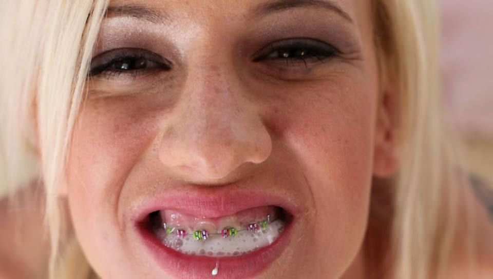 A teen girl with braces? Yeaaaaaahhh! Remember when you were in high school and you thought braces were the dorkiest thing ever? Well, it's her braces that make this teen so appealing. Those braces along with the freckles, the blonde hair, the big boobs, and the complete willingness to try to take as much of Scott's big cock as she can fit in her mouth. Kaylee Hilton is one hot little 19-year-old and she looks even hotter when she's got a mouthful of cock about to explode all over her braces. She works the cum out of his cock and lets him spray creamy jizz all over her orthodontist's handiwork. Kaylee Hilton is ready to be everyone's favorite brace-faced porn starlet.